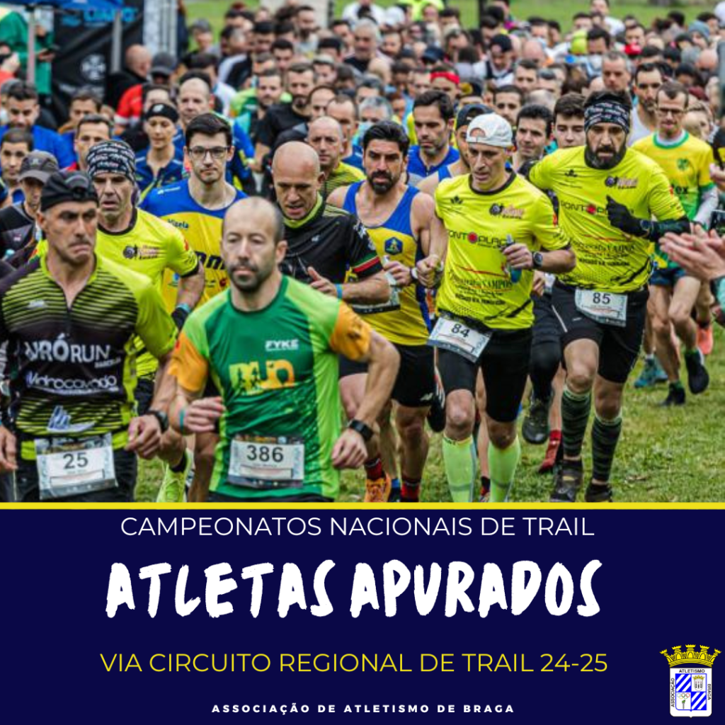competições atletismo atletismo portal Atletas apurados para Campeonatos Nacionais Trail resultados Circuitos Regionais Trail época 2024/25 fechados comunica atletas Associação Atletismo Braga apurados classificação Circuito Regional Trail época passada para diferentes Campeonatos Nacionais Trail atletas vertente: CAMPEONATO