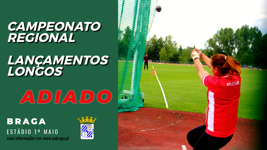 Longos ADIADO Campeonato Regional Lançamentos Longos Associação Atletismo Braga agendado para manhã próximo sábado fevereiro será adiado condições