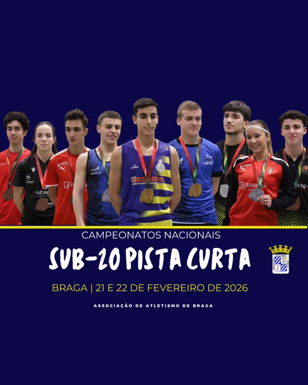 Atletismo Braga Agência Design BYDAS Disputaram dias fevereiro 2026 Campeonatos Nacionais pista curta com várias medalhas conquistadas pelos atletas nossos