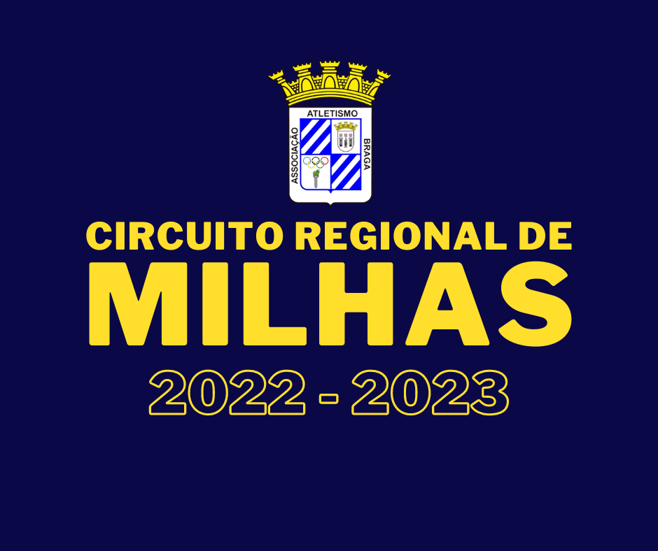 Circuito Regional Milhas Associação Atletismo Braga época 2022 2023 são conhecidas têm inscrições abertas São elas: dezembro 2022: Milha Urbana Cidade Vizela realizada abril: Milha Urbana Amigos Montanha Barcelos INSCRIÇÕES abril: Milha Liberdade Póvoa Lanhoso INSCRIÇÕES maio: Milha Urbana Cidade Vila Nova Famalicão INSCRIÇÕES Para atletas equipas classificarem para Circuito Regional