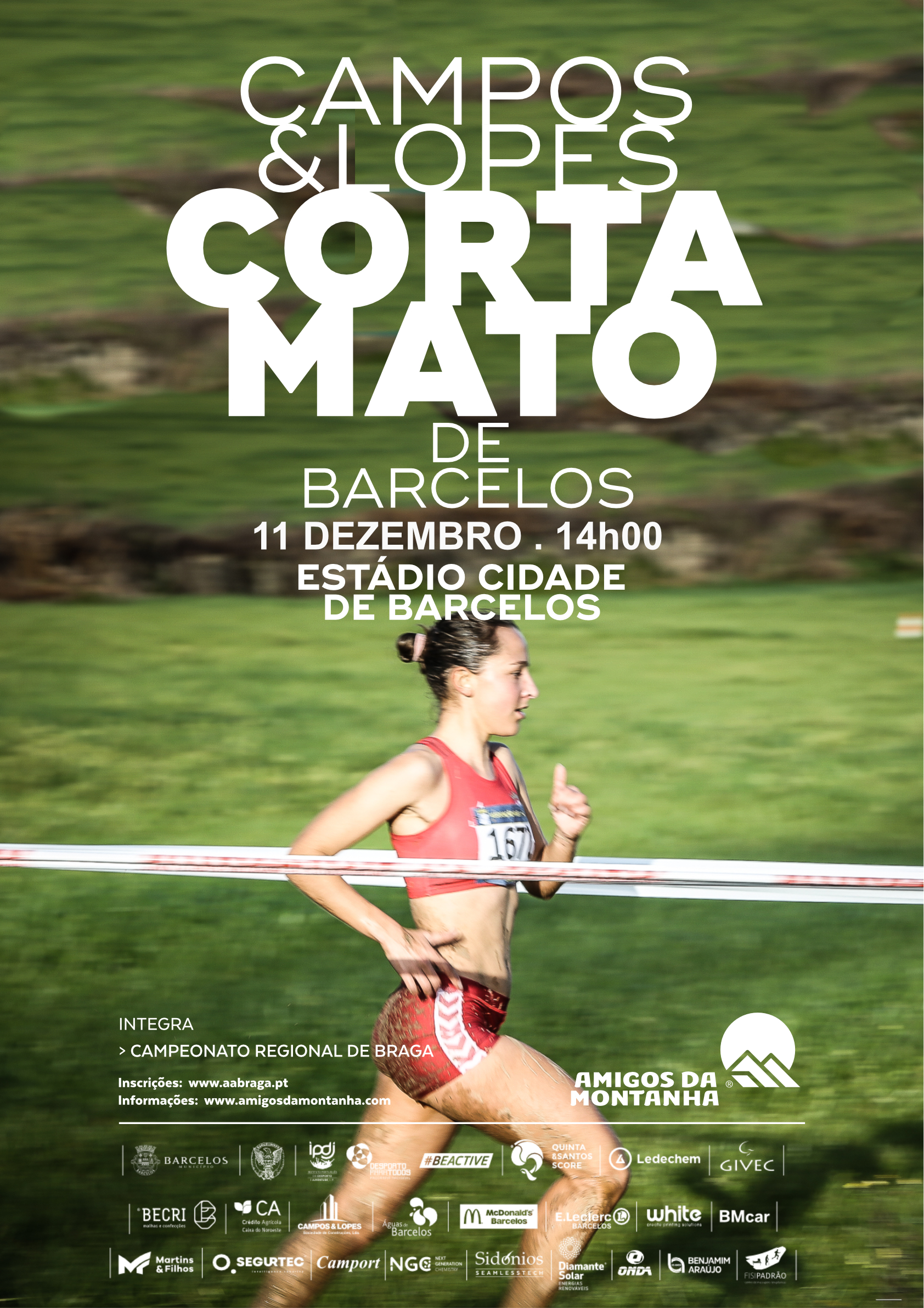 Corta mato longo Associação Atletismo Braga provas têm inicio pelas 14h00 sendo destinadas atletas todos escalões etários Benjamins Veteranos existindo também prova aberta inscrições gratuitas devem