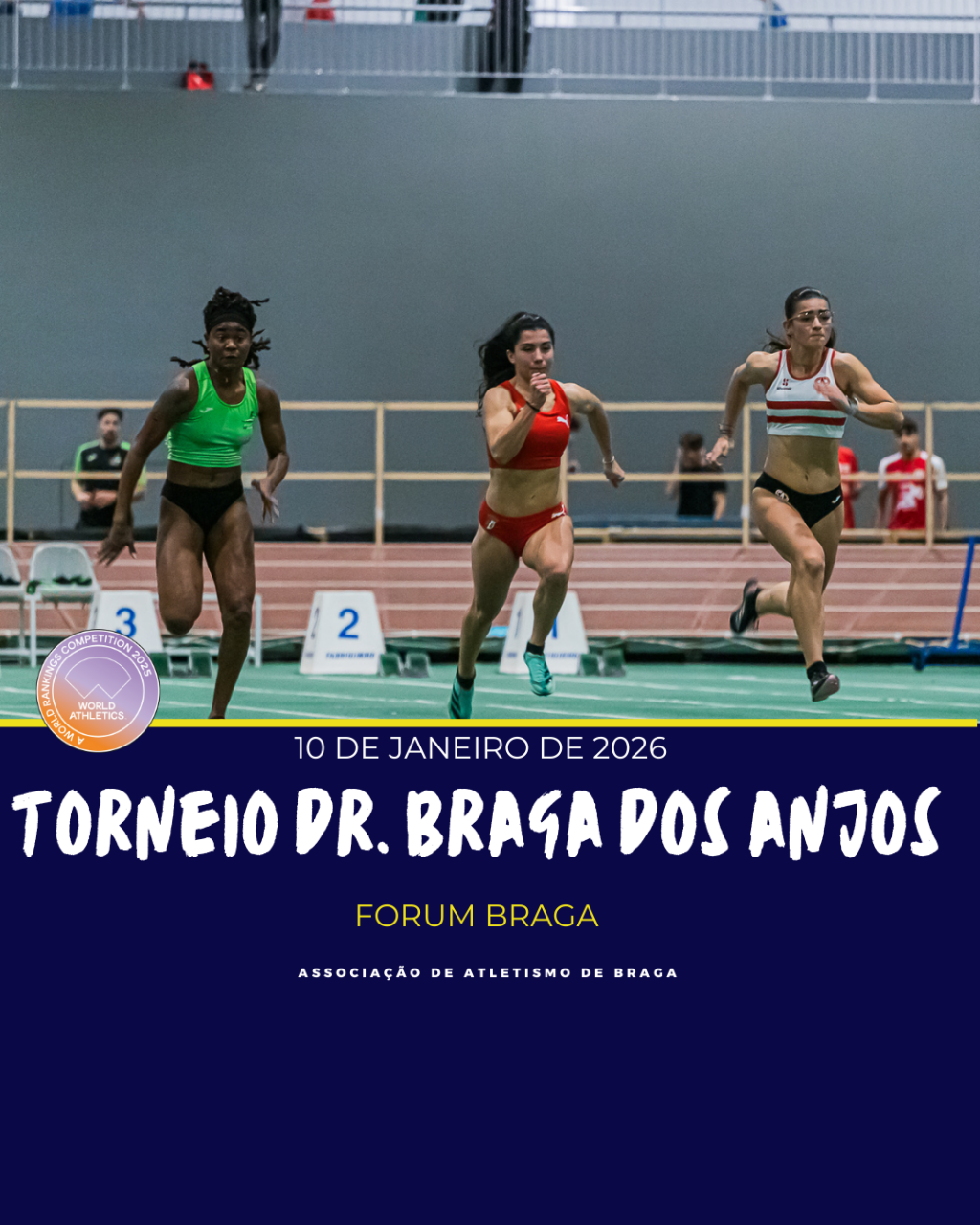 sábado janeiro Forum Braga será palco Torneio Braga Anjos competição pista curta integrada global calendar World Athetics competição destinada atletas escalões diante estando prevista prova metros para atletismo atletismo braga atletas braga competições atletismo atletismo portal Torneio
